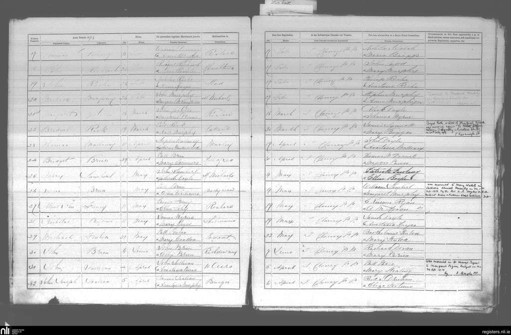 Tagoat; County of Wexford; Diocese of Ferns. Baptisms, Feb. 1876 to June 1876