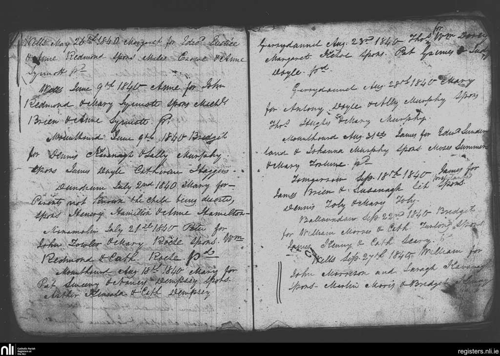 Monamolin; County of Wexford; Diocese of Ferns. Baptisms, May 1840 to Sep. 1840