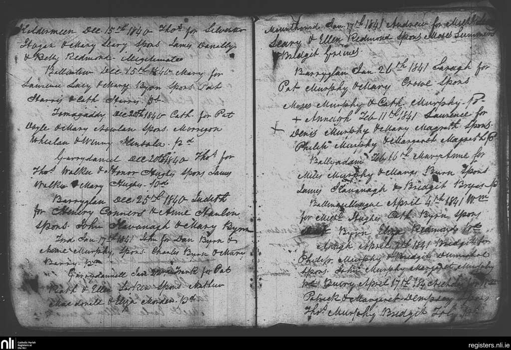 Monamolin; County of Wexford; Diocese of Ferns. Baptisms, Dec. 1840 to Apr. 1841