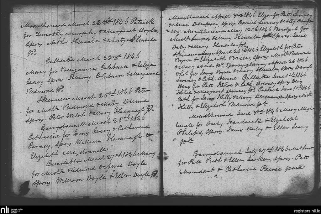 Monamolin; County of Wexford; Diocese of Ferns. Baptisms, Mar. 1846 to July 1846
