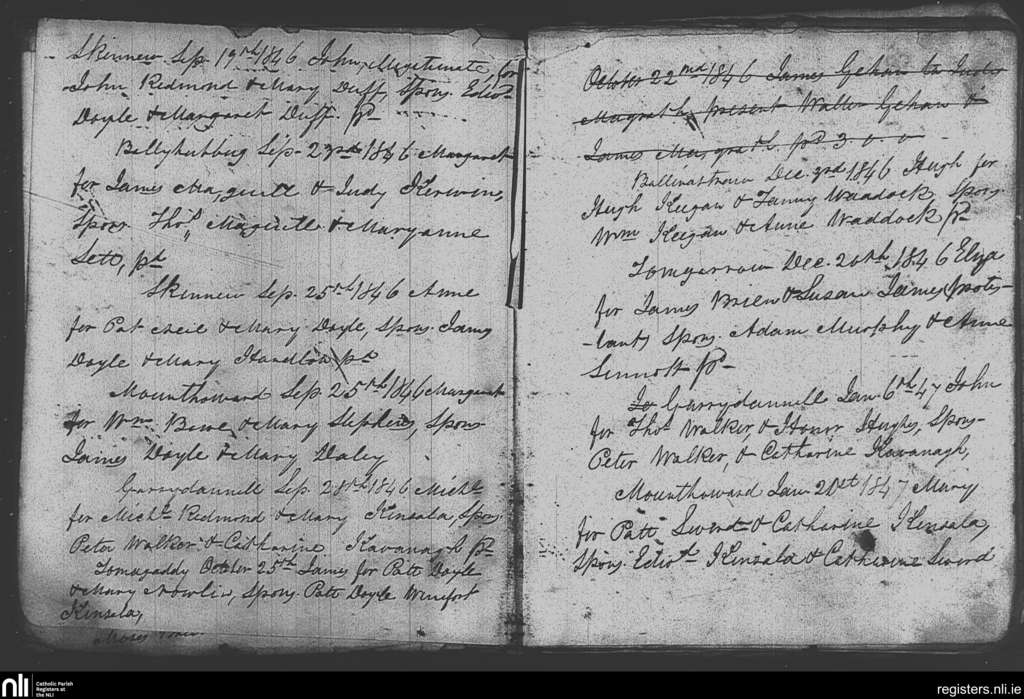 Monamolin; County of Wexford; Diocese of Ferns. Baptisms, Sep. 1846 to Jan. 1847