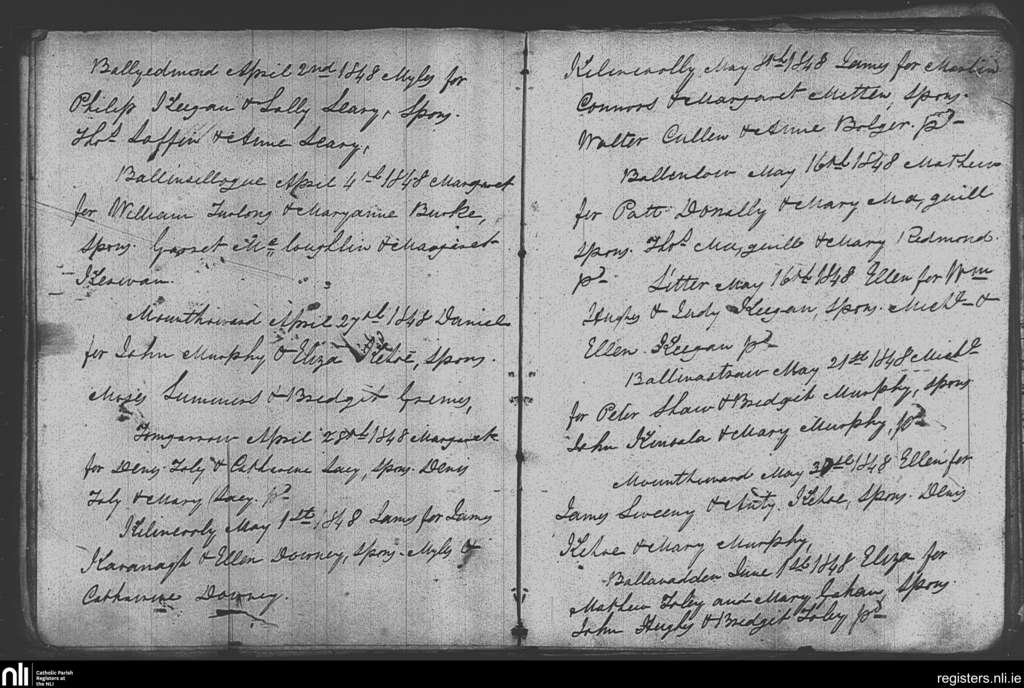 Monamolin; County of Wexford; Diocese of Ferns. Baptisms, Apr. 1848 to June 1848