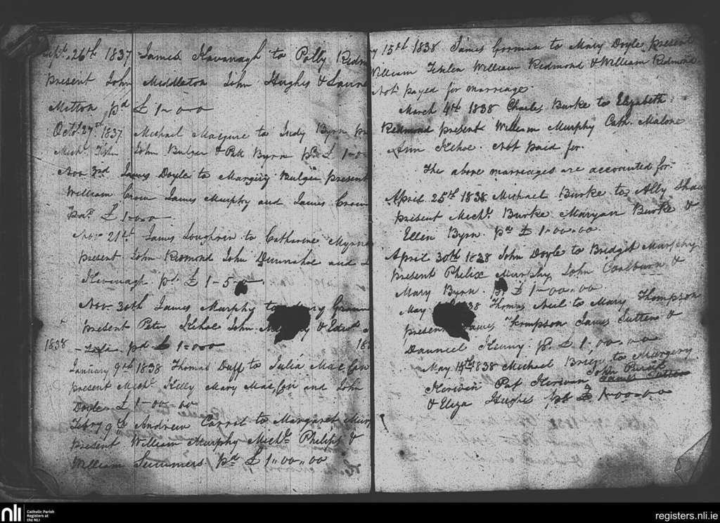 Monamolin; County of Wexford; Diocese of Ferns. Marriages, Sep. 1837 to May 1838