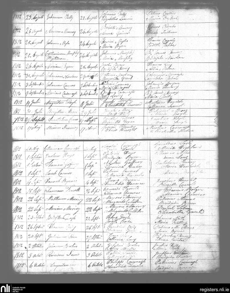 New Ross; County of Wexford; Diocese of Ferns. Baptisms, July 1812 to Oct. 1812
