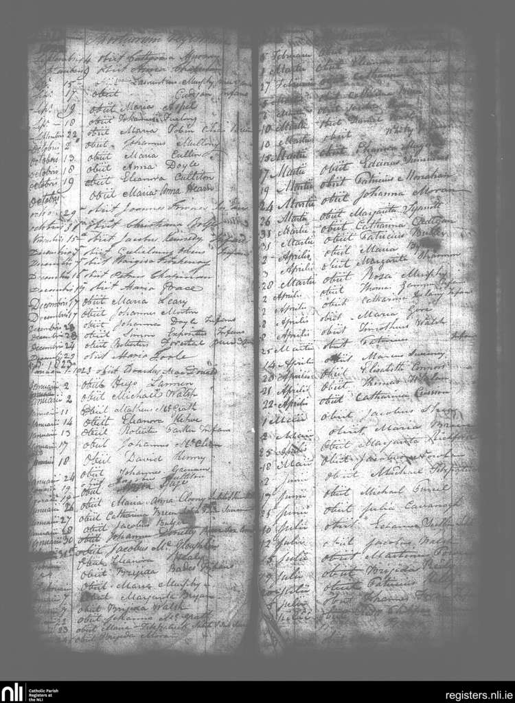 New Ross; County of Wexford; Diocese of Ferns. Deaths, Sep. 1822 to Aug. 1823