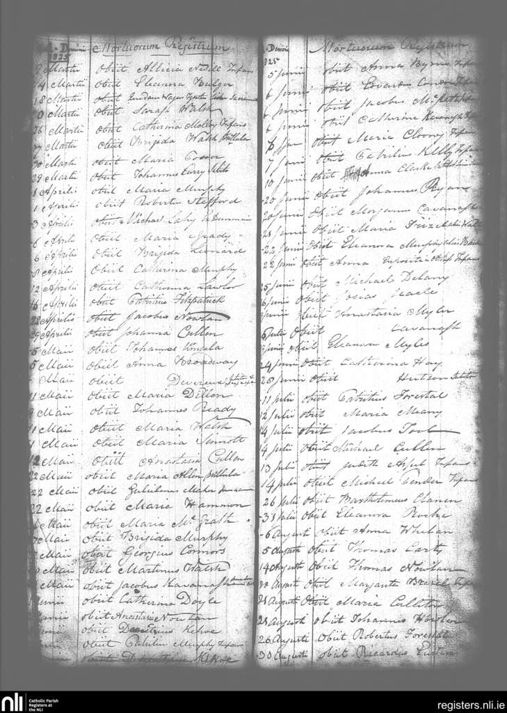 New Ross; County of Wexford; Diocese of Ferns. Deaths, Mar. 1825 to Aug. 1825