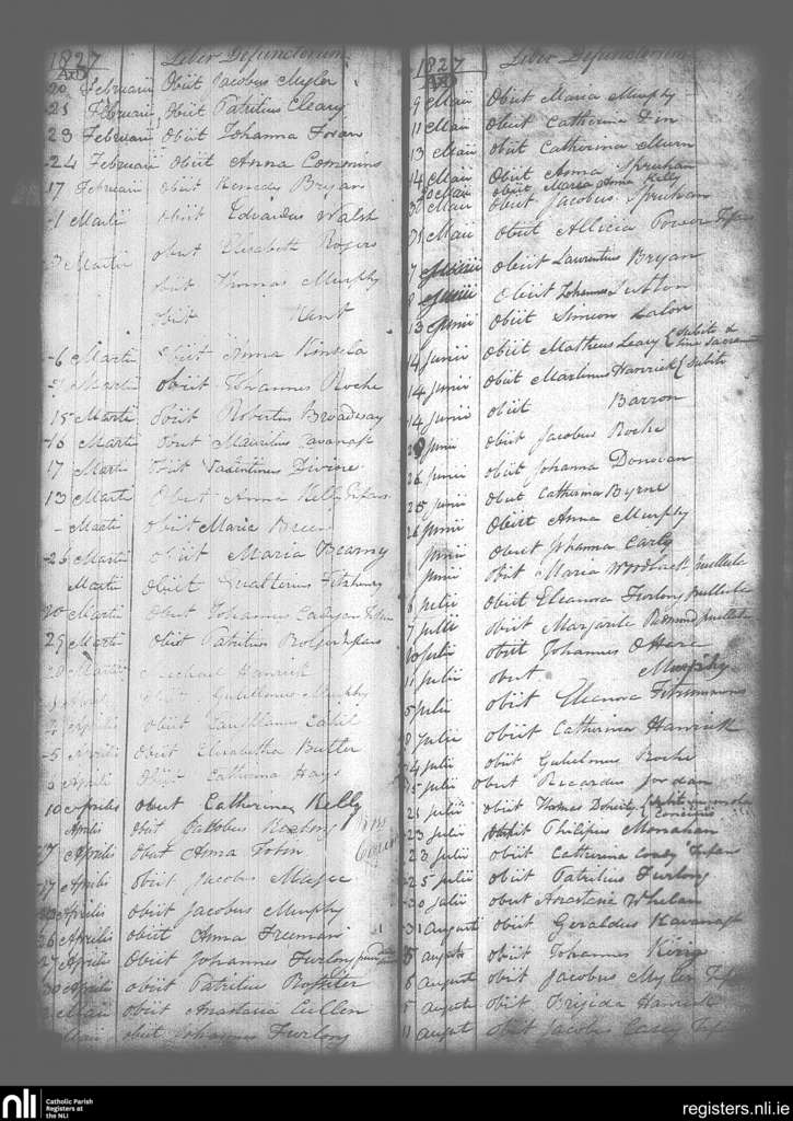 New Ross; County of Wexford; Diocese of Ferns. Deaths, Feb. 1827 to Aug. 1827