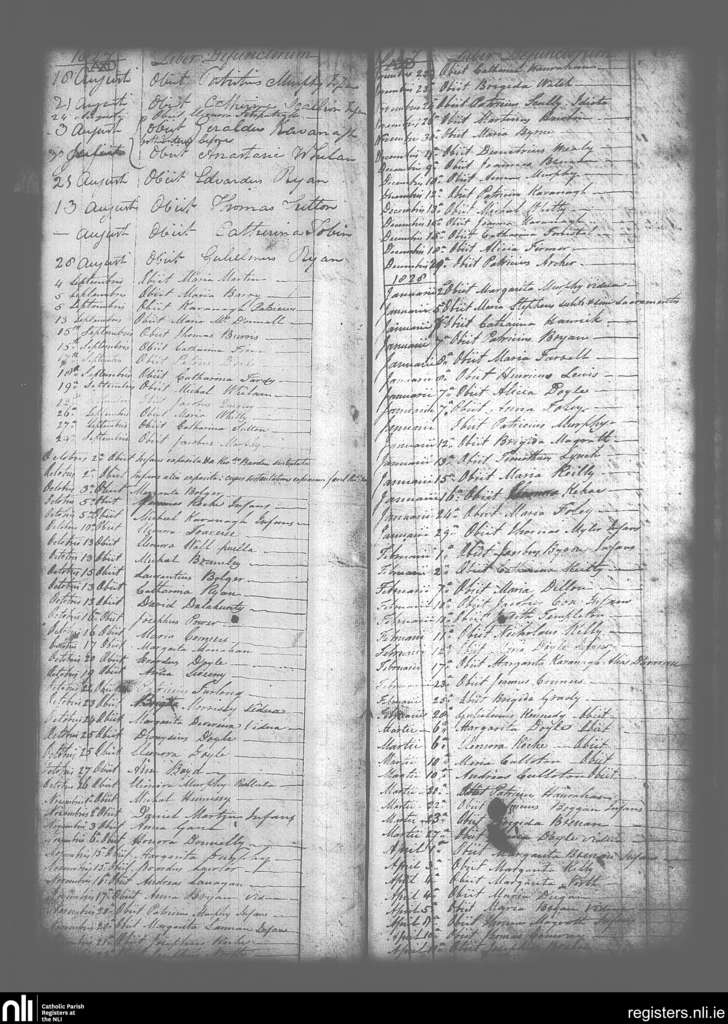 New Ross; County of Wexford; Diocese of Ferns. Deaths, Aug. 1827 to Apr. 1828