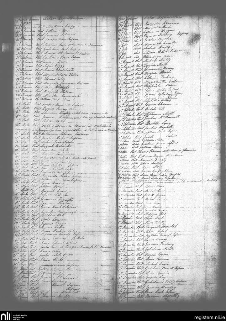 New Ross; County of Wexford; Diocese of Ferns. Deaths, Jan. 1833 to Jan. 1834