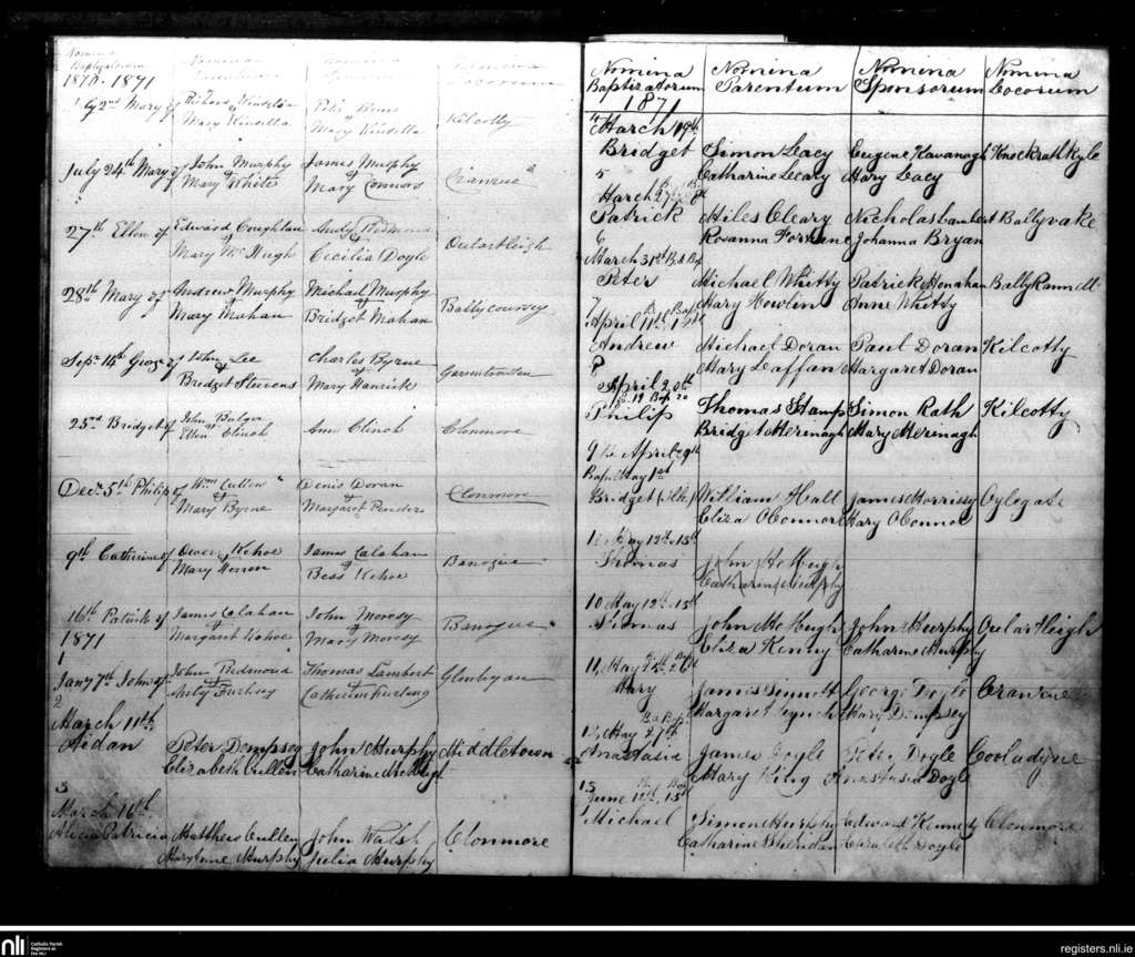 Oylegate; County of Wexford; Diocese of Ferns. Baptisms, July 1870 to June 1871