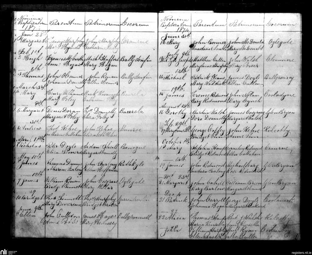 Oylegate; County of Wexford; Diocese of Ferns. Baptisms, Jan. 1874 to Dec. 1874