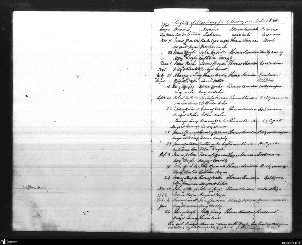 Oylegate; County of Wexford; Diocese of Ferns. Marriages, Nov. 1860 to June 1862