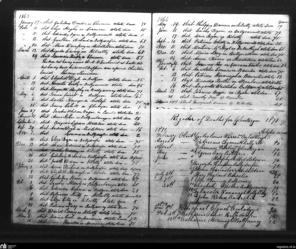 Oylegate; County of Wexford; Diocese of Ferns. Deaths, Jan. 1863 to Feb. 1872