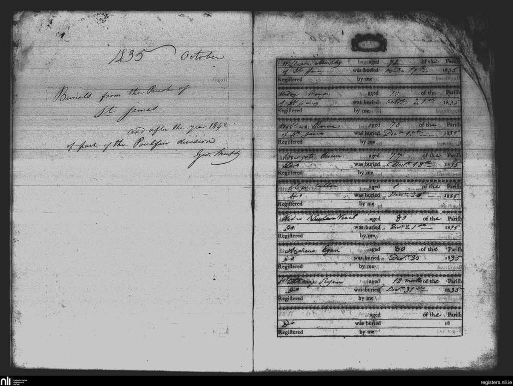 St. James and Hook; County of Wexford; Diocese of Ferns. Deaths, Oct. 1835 to Dec. 1835