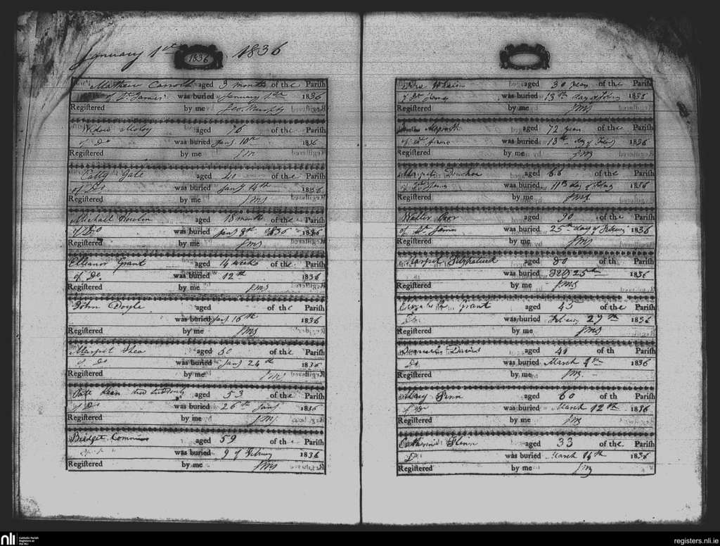 St. James and Hook; County of Wexford; Diocese of Ferns. Deaths, Jan. 1836 to Mar. 1836