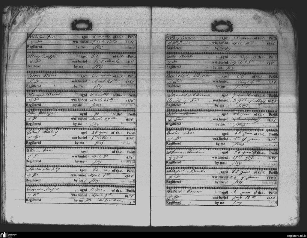 St. James and Hook; County of Wexford; Diocese of Ferns. Deaths, Mar. 1836 to July 1836