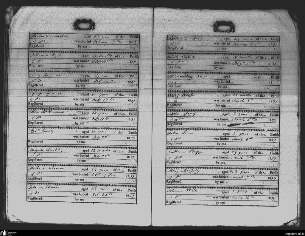 St. James and Hook; County of Wexford; Diocese of Ferns. Deaths, Feb. 1837 to Mar. 1837