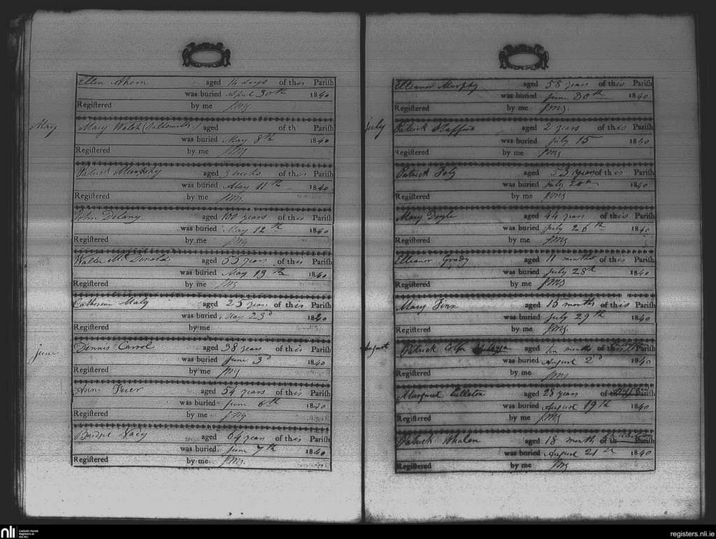 St. James and Hook; County of Wexford; Diocese of Ferns. Deaths, Apr. 1840 to Aug. 1840