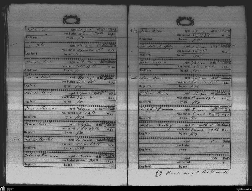St. James and Hook; County of Wexford; Diocese of Ferns. Deaths, Aug. 1840 to Dec. 1840