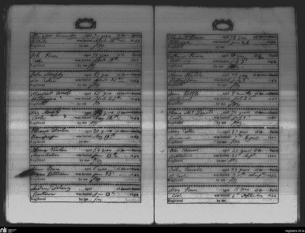 St. James and Hook; County of Wexford; Diocese of Ferns. Deaths, Apr. 1842 to Sep. 1842