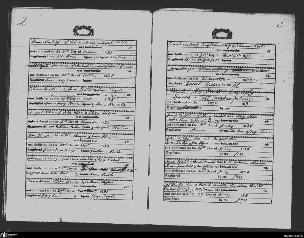 St. James and Hook; County of Wexford; Diocese of Ferns. Baptisms, Oct. 1835 to Jan. 1836