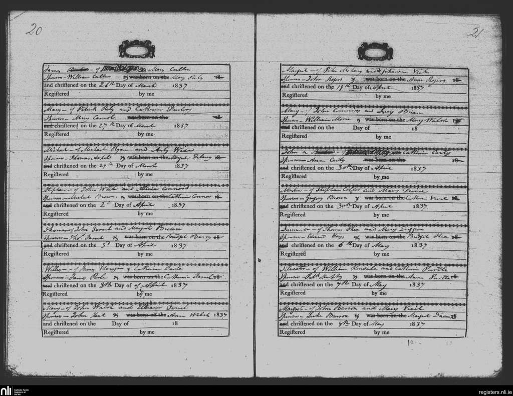 St. James and Hook; County of Wexford; Diocese of Ferns. Baptisms, Mar. 1837 to May 1837