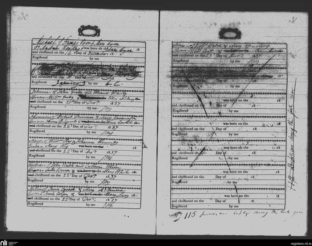 St. James and Hook; County of Wexford; Diocese of Ferns. Baptisms, Dec. 1837