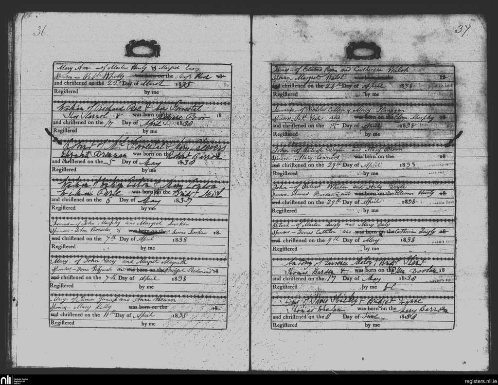 St. James and Hook; County of Wexford; Diocese of Ferns. Baptisms, Mar. 1838 to June 1838