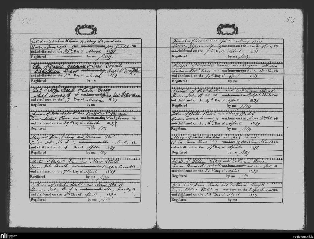 St. James and Hook; County of Wexford; Diocese of Ferns. Baptisms, Mar. 1839 to Apr. 1839