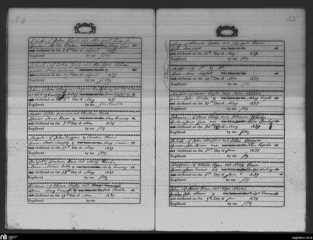 St. James and Hook; County of Wexford; Diocese of Ferns. Baptisms, Apr. 1839 to June 1839