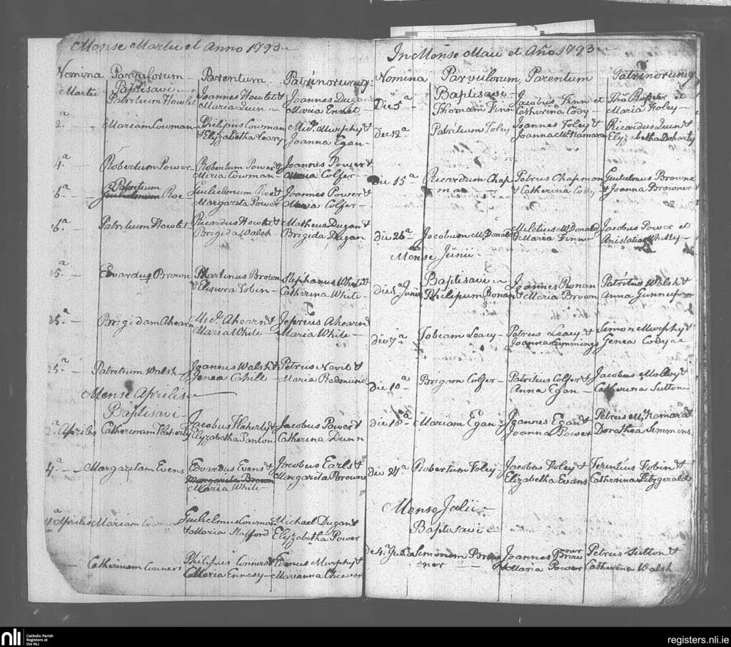 St. James and Templetown; County of Wexford; Diocese of Ferns. Baptisms, Mar. 1793 to July 1793