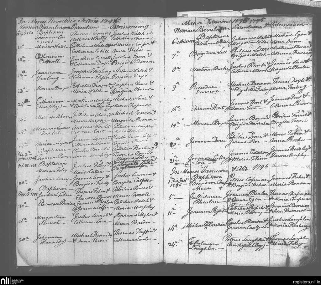 St. James and Templetown; County of Wexford; Diocese of Ferns. Baptisms, Nov. 1795 to Jan. 1796
