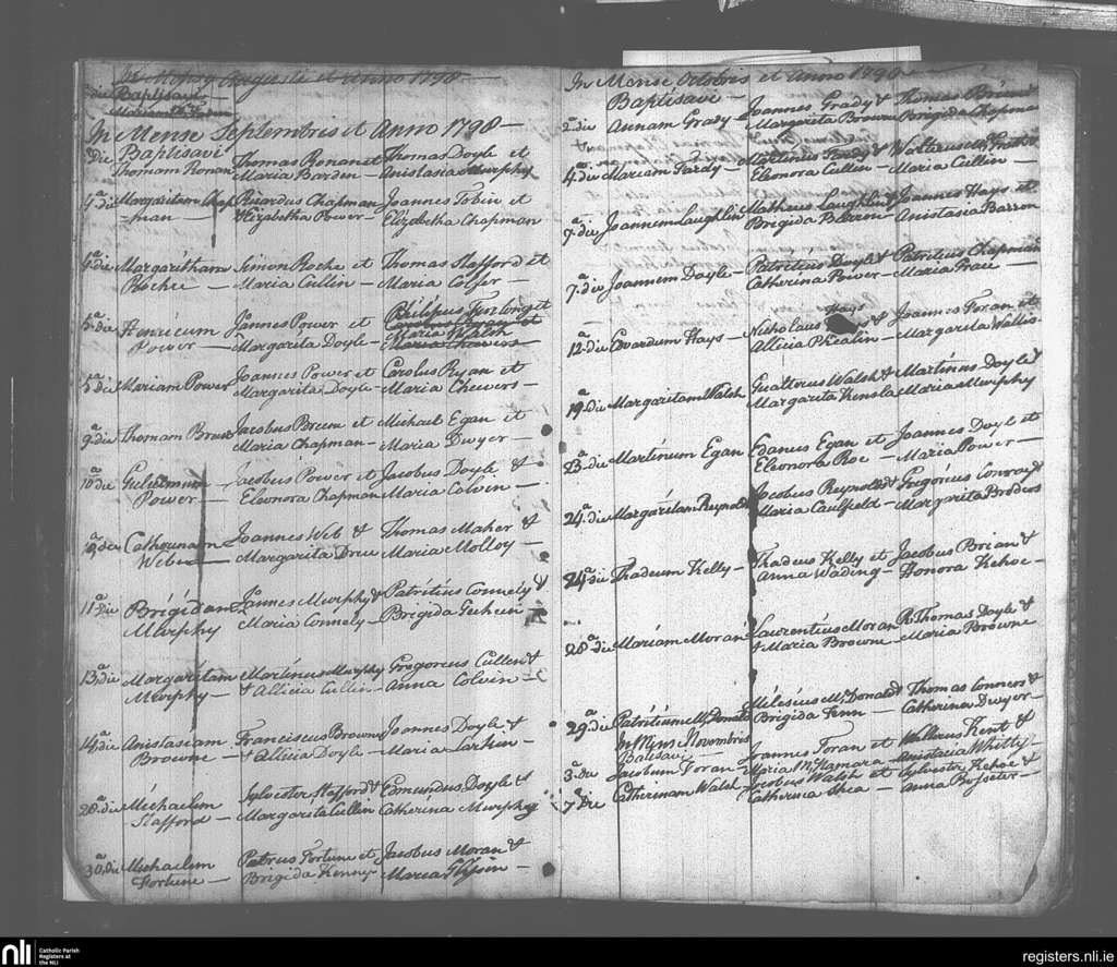 St. James and Templetown; County of Wexford; Diocese of Ferns. Baptisms, Aug. 1798 to Nov. 1798