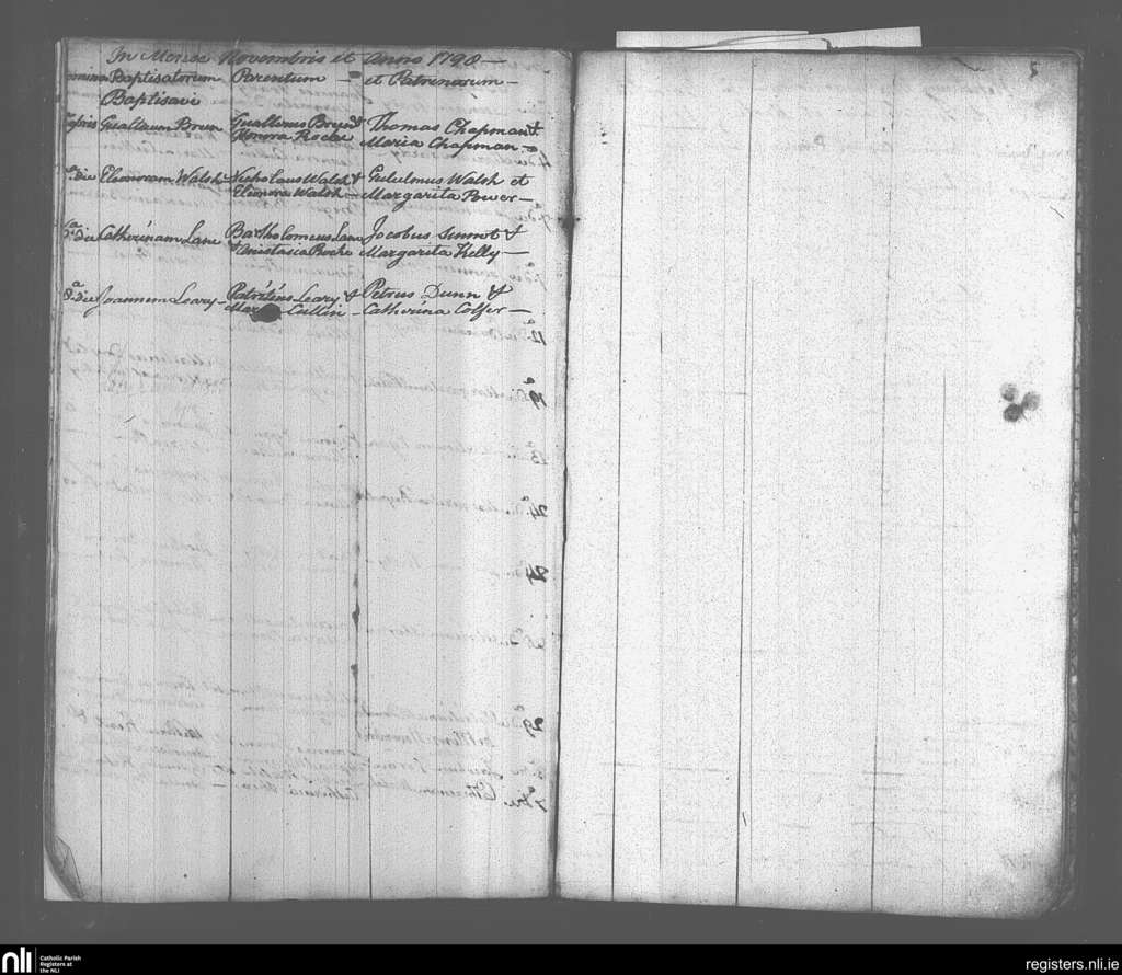 St. James and Templetown; County of Wexford; Diocese of Ferns. Baptisms, Nov. 1798