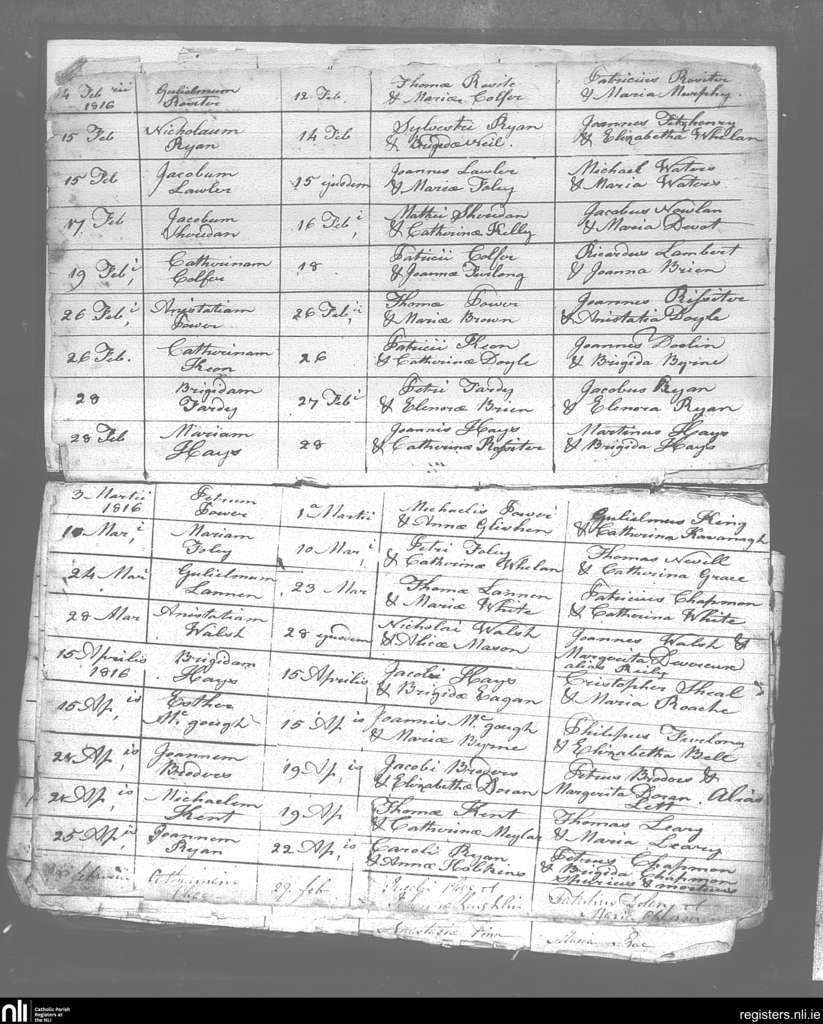 St. James and Templetown; County of Wexford; Diocese of Ferns. Baptisms, Feb. 1816 to Apr. 1816