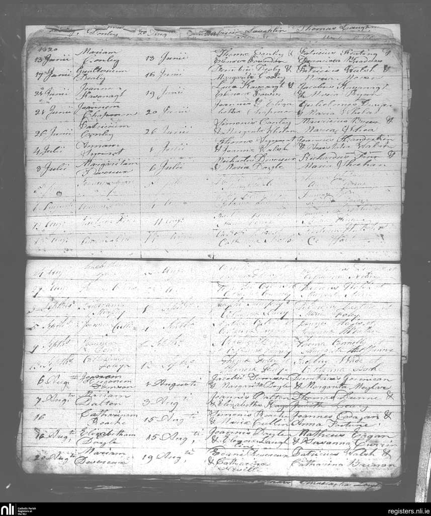 St. James and Templetown; County of Wexford; Diocese of Ferns. Baptisms, June 1820 to Sep. 1820