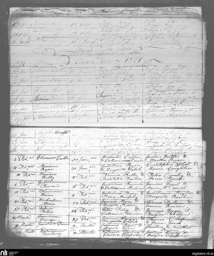 St. James and Templetown; County of Wexford; Diocese of Ferns. Baptisms, Oct. 1820 to Mar. 1821