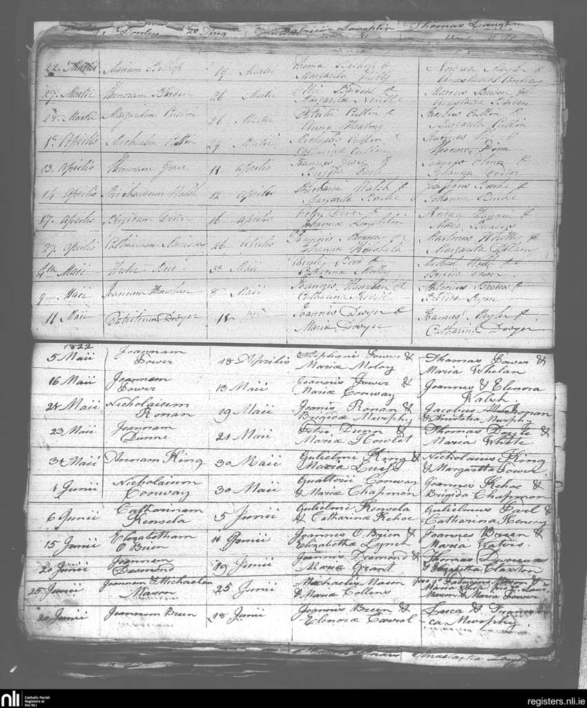 St. James and Templetown; County of Wexford; Diocese of Ferns. Baptisms, Mar. 1822 to June 1822