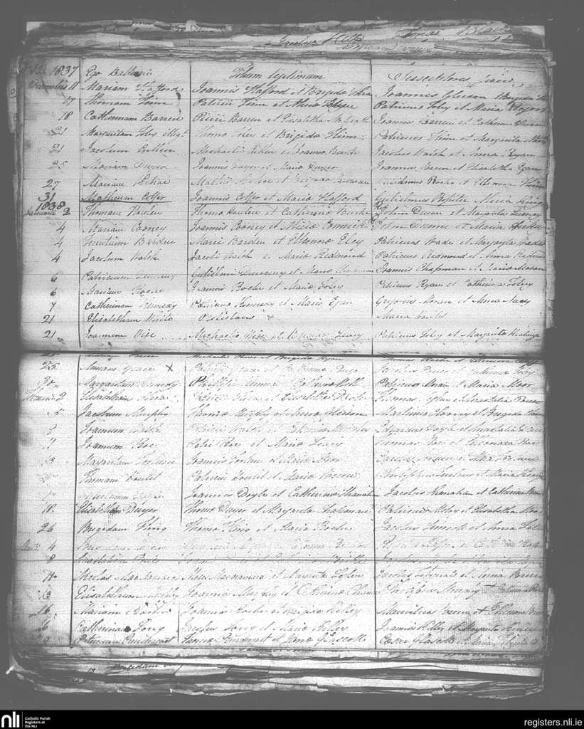 St. James and Templetown; County of Wexford; Diocese of Ferns. Baptisms, Dec. 1837 to Mar. 1838