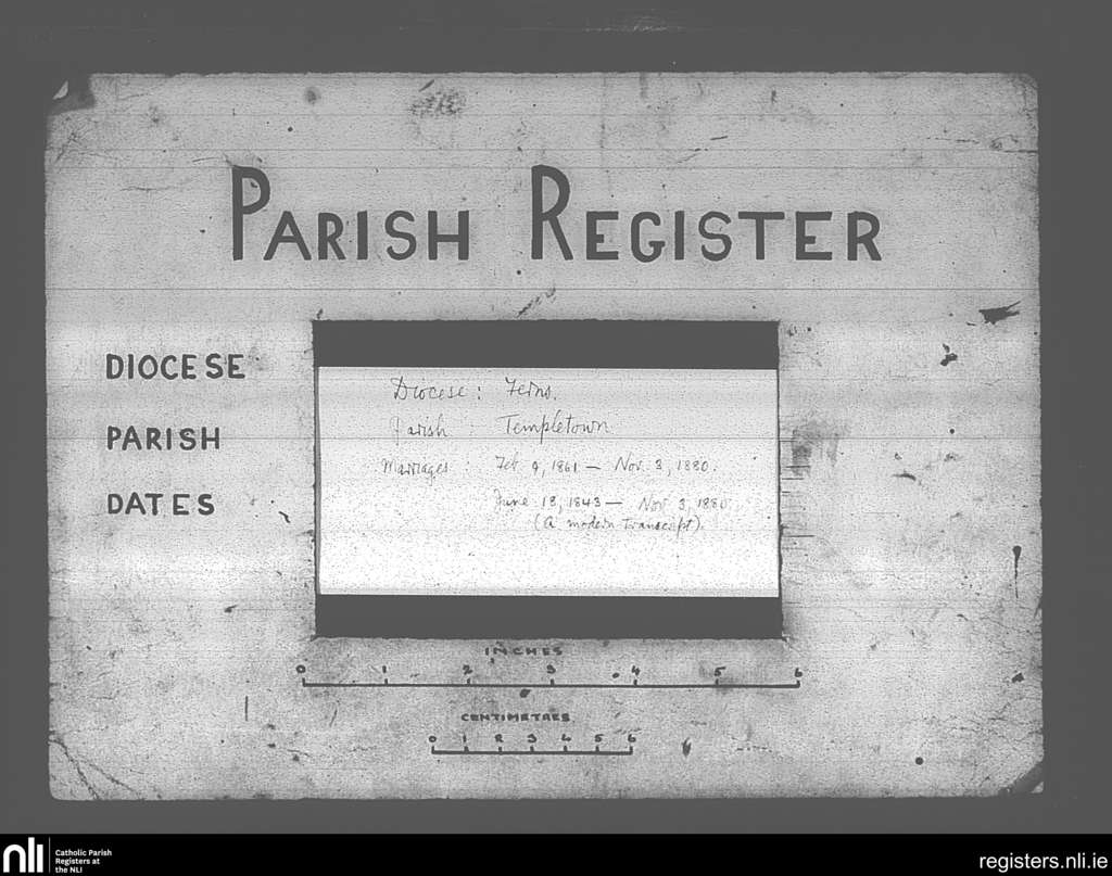 St. James and Templetown; County of Wexford; Diocese of Ferns. Marriages