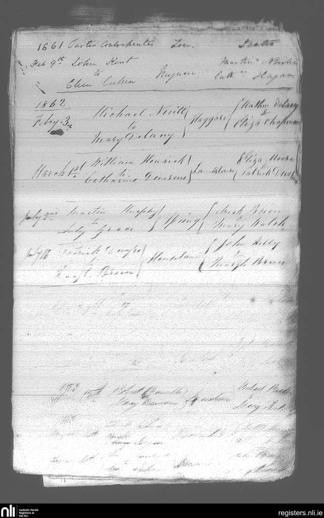 St. James and Templetown; County of Wexford; Diocese of Ferns. Marriages, Feb. 1861 to Apr. 1863