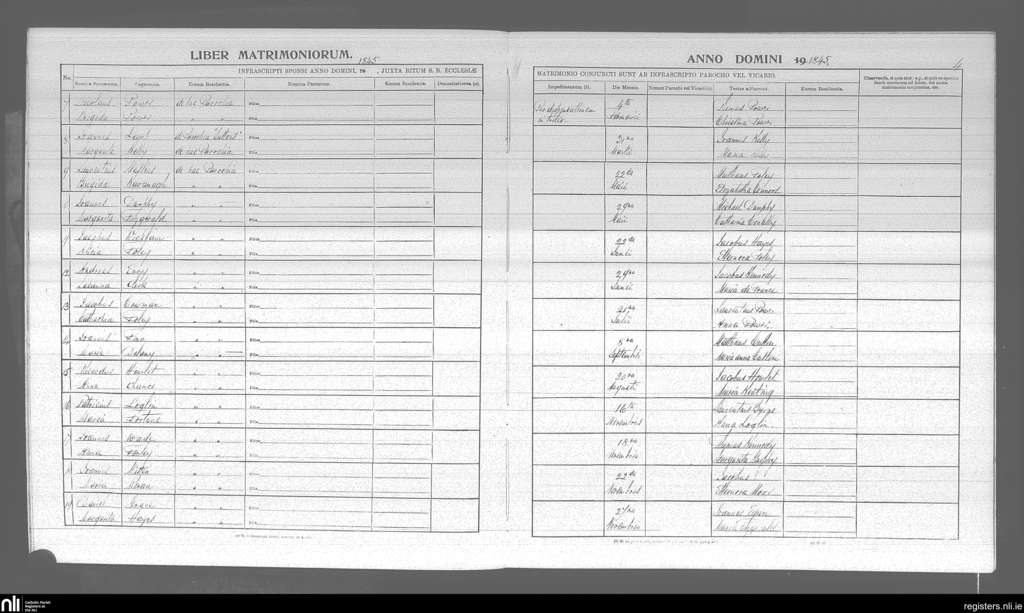 St. James and Templetown; County of Wexford; Diocese of Ferns. Marriages, Feb. 1845 to Nov. 1845