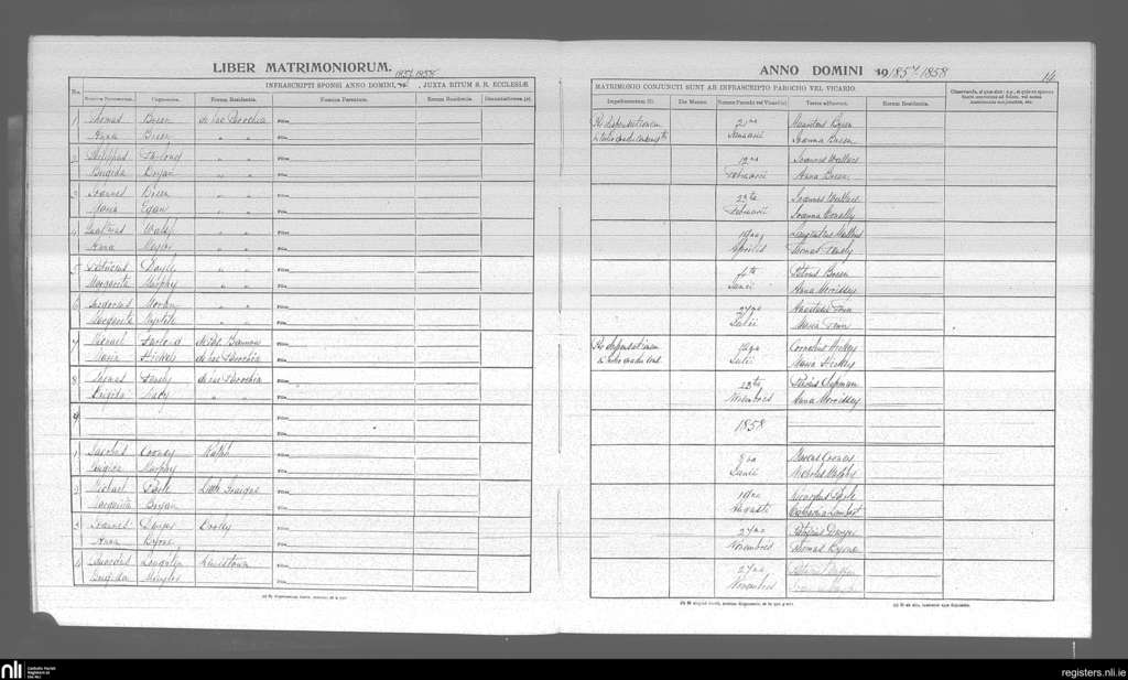 St. James and Templetown; County of Wexford; Diocese of Ferns. Marriages, Jan. 1857 to Nov. 1858