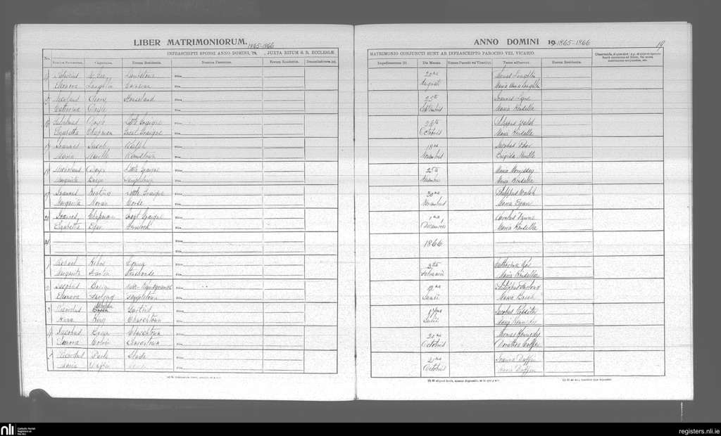 St. James and Templetown; County of Wexford; Diocese of Ferns. Marriages, Aug. 1865 to Oct. 1866