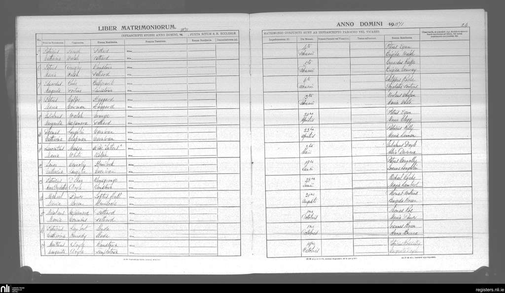 St. James and Templetown; County of Wexford; Diocese of Ferns. Marriages, Feb. 1871 to Oct. 1871