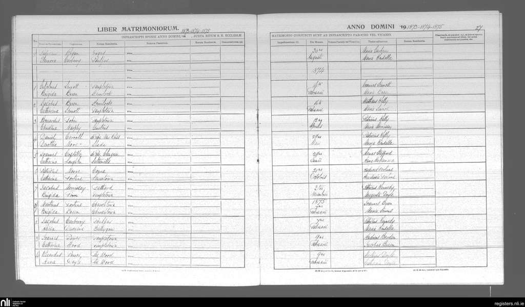 St. James and Templetown; County of Wexford; Diocese of Ferns. Marriages, Aug. 1873 to Feb. 1875