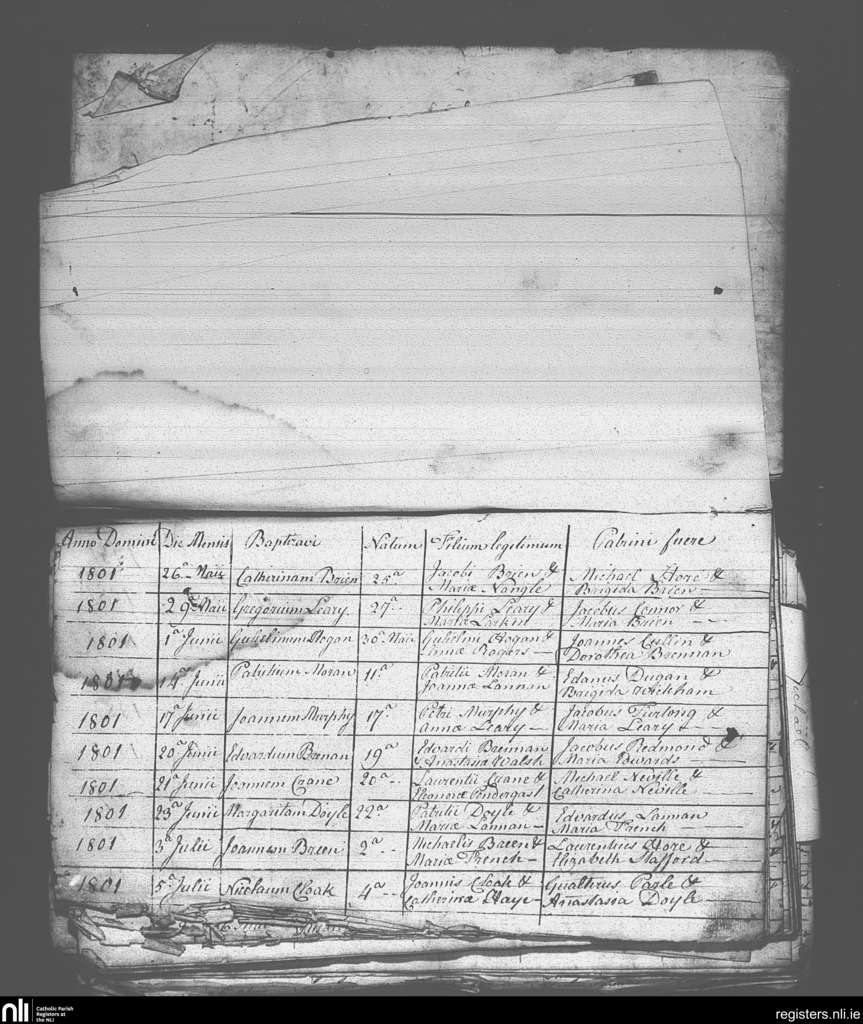 Taghmon; County of Wexford; Diocese of Ferns. Baptisms, May 1801 to July 1801