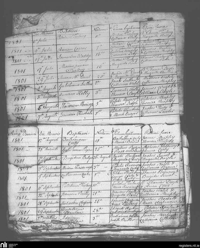 Taghmon; County of Wexford; Diocese of Ferns. Baptisms, July 1801 to Oct. 1801