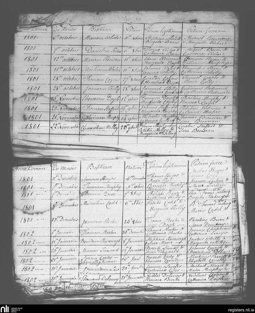 Taghmon; County of Wexford; Diocese of Ferns. Baptisms, Oct. 1801 to Jan. 1802
