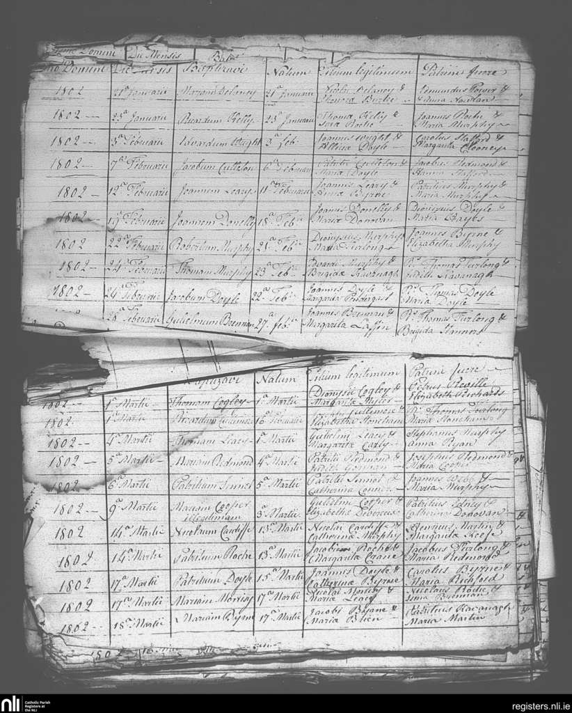 Taghmon; County of Wexford; Diocese of Ferns. Baptisms, Jan. 1802 to Mar. 1802
